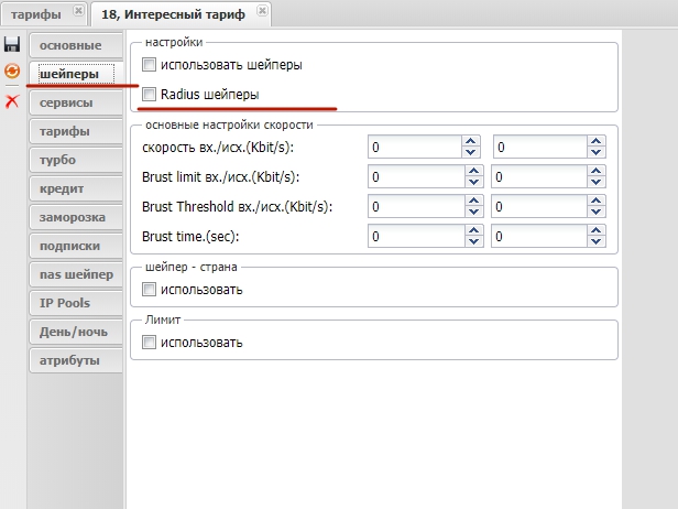 Показать исходный текстСсылки сюдаНаверх MPD5 - pipe шейпера [проверка] Изучите руководство по IPFW перед использованием. в IPFW есть нумерованные адрес листы и мпд5 позволяет автоматизировать добавление и удаление оттуда ip абонентов. Принцип включения функционала очень прост. В свойствах тарифа указать номер pipe очереди и включить выдачу номера pipe. Таким образом в ваши абоненты после подключения попадут в ipfw адрес лист указанный в тарифе. Как в примере - 10. Внимание указывать только цифры. Таким образом вы можете использовать эти адрес листы как вы хотите, не обязательно для pipe шейперов но и для чего угодно. Так же рекомендуется отключить radius шейпера для использования pipe шейперов. IPFW адресс лист Отключение radius шейпера В свойствах NAS отключить radius шейпера. В тарифе нужно отключить radius шейпера. Скрипты Так же благодаря этому функционалу можно реализовать шейпер день/ночь, мир/страна. Все зависит от ваших навыков написания скриптов. Скрипт создание очередей из микбилл на данный момент утерян. Если кто то желает поделится скриптом свяжитесь с автором. config/nas_servers/mpd5/pipe.txt Последние изменения: 2019/12/17 23:00 — gudwin