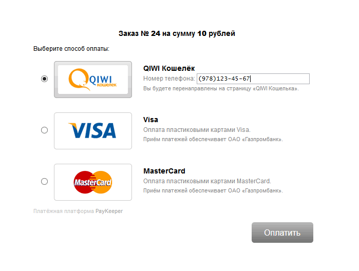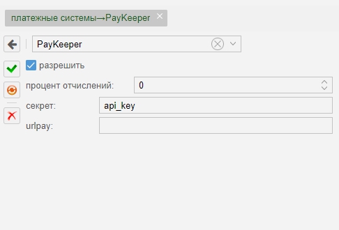 Показать исходный текстСсылки сюдаНаверх Содержание Пример на подключение провайдера Настройка MikBill Пополнение из ЛК PayKeeper [чистовик] Сайт: https://paykeeper.ru/ Пример на подключение провайдера Result URLhttps://admin.ispnet.demo/ajax/index/paykeeper «Result URL» Обязательно должен быть внешним доменом! Не забываем заменить «admin.ispnet.demo» и «stat.ispnet.demo» на свой Внешний домен, который доступен из интернет. http или https несущественно, главное чтобы по этой ссылке (https://admin.ispnet.demo) вы могли попадать в админку из интернета, а по ссылке (http://stat.ispnet.demo) - в личный кабинет из интернета. Настройка MikBill Используется cURL Перейти «Настройки»→ «системные опции» →«платежные системы»→«PayKeeper» Не забываем отметить «Разрешить». Параметр Пояснение Обязательные: секрет Cекретный токен urlpay Ссылка формы выбора способа оплаты «order/inline/» («order/form/» не тестировалась) Всё, настройка закончена. Пополнение из ЛК paysystems/paysystem/paykeeper.txt Последние изменения: 2019/08/29 11:09 — Дмитрий Грошилин