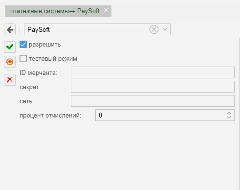 Показать исходный текстСсылки сюдаНаверх PaySoft [чистовик] https://paysoft.solutions/ Пример на подключение провайдера Регистрация: Result URLhttps://admin.ispnet.demo/ajax/index/paysoft «Result URL» Обязательно должен быть внешним доменом! Не забываем заменить «admin.ispnet.demo» и «stat.ispnet.demo» на свой Внешний домен, который доступен из интернет. http или https несущественно, главное чтобы по этой ссылке (https://admin.ispnet.demo) вы могли попадать в админку из интернета, а по ссылке (http://stat.ispnet.demo) - в личный кабинет из интернета. Настройка MikBill Перейти «Настройки»→ «системные опции» →«платежные системы»→«PaySoft» Не забываем отметить «Разрешить». Параметр Пояснение Обязательные: ID мерчанта Логин магазина секрет секрет магазина сеть подсеть, из которой будут приходить запросы (уточните у менеджера в момент подключения) Всё, настройка закончена. Настройки для субпровайдера Подробней тут paysystems/paysystem/paysoft.txt Последние изменения: 2019/08/29 11:18 — Дмитрий Грошилин