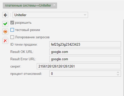 Показать исходный текстСсылки сюдаНаверх Содержание Пример на подключение провайдера Настройка Uniteller Настройка MikBill Uniteller [чистовик] Сайт: http://www.uniteller.ru/ Пример на подключение провайдера Result URLhttps://admin.ispnet.demo/ajax/index/uniteller «Result URL» Обязательно должен быть внешним доменом! Не забываем заменить «admin.ispnet.demo» и «stat.ispnet.demo» на свой Внешний домен, который доступен из интернет. http или https несущественно, главное чтобы по этой ссылке (https://admin.ispnet.demo) вы могли попадать в админку из интернета, а по ссылке (http://stat.ispnet.demo) - в личный кабинет из интернета. Настройка Uniteller Входим в ЛК https://lk.uniteller.ru/login/ Переходим в меню «Точки продажи » и нажимаем кнопку «редактировать» https://lk.uniteller.ru/#/upoints/filter Редактируем данные и запоминаем Ваш Uniteller Point ID «Использовать 2 шаговый платеж» должно стоять «нет» (необходимо связываться с обслуживающим менеджером) Переходим в меню «Параметры авторизации». Нажимаем кнопку «Перегенерировать» и копируем пароль. https://lk.uniteller.ru/#/authparams/ Настройка MikBill Перейти «Настройки»→ «системные опции» →«платежные системы»→«Uniteller» Заполняем поля: «Разрешить» - ставим галочку тем самым включая ПС ID Точки продажи- вводим значение Uniteller Point ID с вкладки «Точки продажи» Секрет - вводим пароль c вкладки «Параметры Авторизации» Не забываем отметить «Разрешить». Все настройка закончена. paysystems/paysystem/uniteller.txt Последние изменения: 2019/08/29 11:27 — Дмитрий Грошилин
