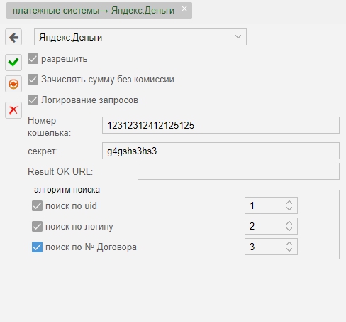 Показать исходный текстСсылки сюдаНаверх Содержание Пример на подключение провайдера Настройка Yandex.Деньги Настройка MikBill Yandex.Деньги [чистовик] Сайт: https://money.yandex.ru/settings Пример на подключение провайдера Result URLhttps://admin.ispnet.demo/ajax/index/yandexmoney «Result URL» Обязательно должен быть внешним доменом! Не забываем заменить «admin.ispnet.demo» и «stat.ispnet.demo» на свой Внешний домен, который доступен из интернет. http или https несущественно, главное чтобы по этой ссылке (https://admin.ispnet.demo) вы могли попадать в админку из интернета, а по ссылке (http://stat.ispnet.demo) - в личный кабинет из интернета. Настройка Yandex.Деньги Переходим по ссылке https://money.yandex.ru/myservices/online.xml Проверяем правильность URL, заменяем свой адрес админ панели биллинга RL https://admin.ispnet.demo/ajax/index/yandexmoney Копируем Секрет нажав на кнопку «Показать секрет», в дальнейшем этот код надо будет указать в опциях платежной системы Настройка MikBill Для настройки в админ. Перейти «Настройки»→ «системные опции» →«платежные системы»→«Яндекс.Деньги» номер кошелька - указываем номер кошелька секрет - указываем секрет для оповещения Result OK URL - ссылка на личный кабинет Не забываем отметить «Разрешить». Все настройка закончена. paysystems/paysystem/yandexmoney.txt Последние изменения: 2019/08/29 11:34 — Дмитрий Грошилин