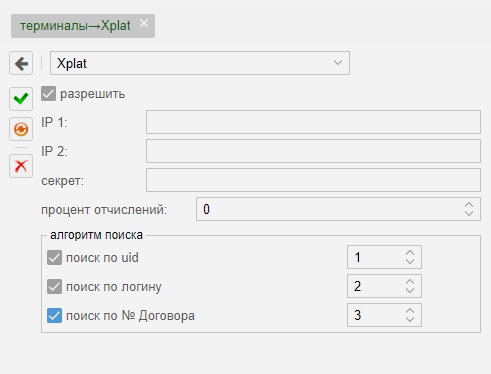 Показать исходный текстСсылки сюдаНаверх Содержание Пример заявки на подключение провайдера Услуги Настройка MikBill X-Plat [чистовик] http://www.x-plat.ru/ Пример заявки на подключение провайдера Сообщите менеджеру Server URL вида https://admin.ispnet.demo/ajax/index/xplat «Server URL» Обязательно должен быть внешним доменом! Не забываем заменить «admin.ispnet.demo» на свой Внешний домен, который доступен из интернет. Услуги Услуга, для пополнения счета, может быть 3-х видов: пополнение по номеру UID абонента по логину абонента по № договора абонента В данной платёжной системе реализована система алгоритмического поиска абонентов, с которой рекомендуем ознакомиться по ссылке ниже: алгоритм_поиска_абонентов Поиск и оплата происходит для основных групп пользователей: обычный (базовый) и замороженный. В зависимости от того в каком виде будет получен запрос, сервер MikBill автоматически его обработает, настроек не требует. Настройка MikBill Перейти «Настройки» → «системные опции» → «терминалы» → «Xplat» Не забываем отметить «Разрешить». Всё, настройка завершена. paysystems/terminals/xplat.txt Последние изменения: 2019/08/16 19:18 — Дмитрий Грошилин